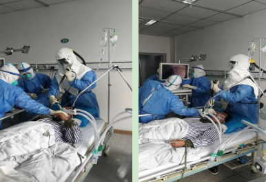 2月11日,潘建光醫(yī)師主動(dòng)請(qǐng)纓為任老伯進(jìn)行氣管拔管,這一操作危險(xiǎn)系數(shù)很高,完全打開(kāi)的氣道會(huì)使得空氣中彌漫著病毒氣溶膠,但團(tuán)隊(duì)的成員們不懼危險(xiǎn),小心翼翼地完成拔管的每一個(gè)動(dòng)作,盡可能規(guī)避任老伯因拔管帶來(lái)的種種風(fēng)險(xiǎn)。憑借著專業(yè)的介入診療技能,大家齊心協(xié)力順利完成了拔管的系列操作。