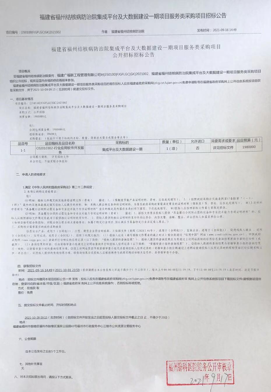 福建省福州結(jié)核病防治院集成平臺(tái)及大數(shù)據(jù)建設(shè)一期項(xiàng)目服務(wù)類采購項(xiàng)目招標(biāo)公告