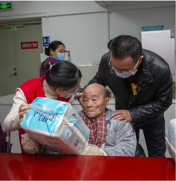隨后,在福利院甘院長的帶領(lǐng)下,高虹書記前往慰問行動(dòng)不便的老人們,為有需要的老人們送上一次性紙尿褲和甘安合劑,叮囑老人注意季節(jié)變化,防寒保暖。