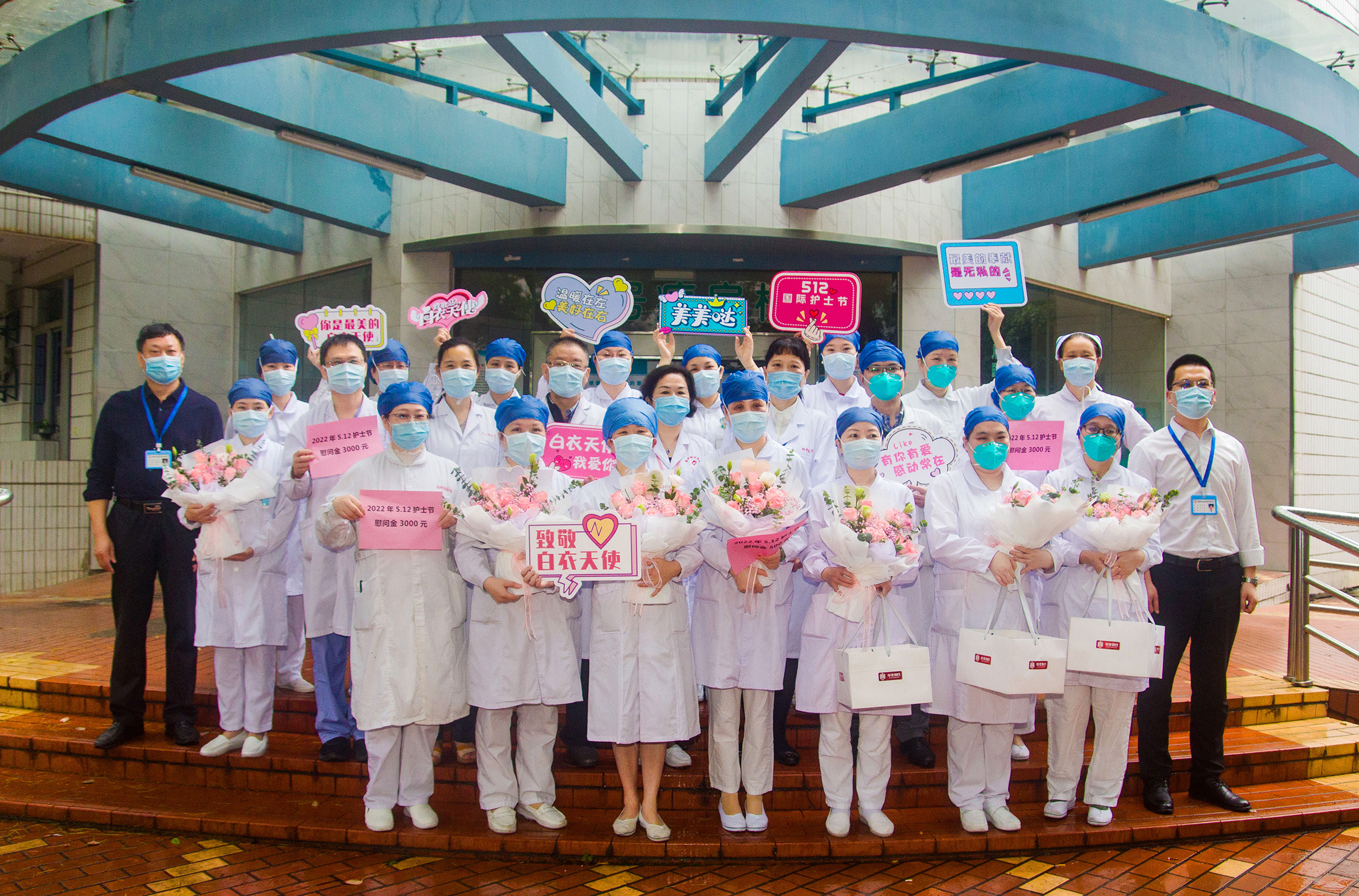院領(lǐng)導(dǎo)們每到一處,都充滿著節(jié)日的喜悅氛圍。大家齊聚一堂,用寓意美好的鮮花、蛋糕為廣大護(hù)理同仁們送去節(jié)日的祝福,肯定護(hù)理同仁為醫(yī)院發(fā)展做出的積極貢獻(xiàn),用鼓舞士氣的高喊口號堅定全院抗擊疫情必勝的信念。