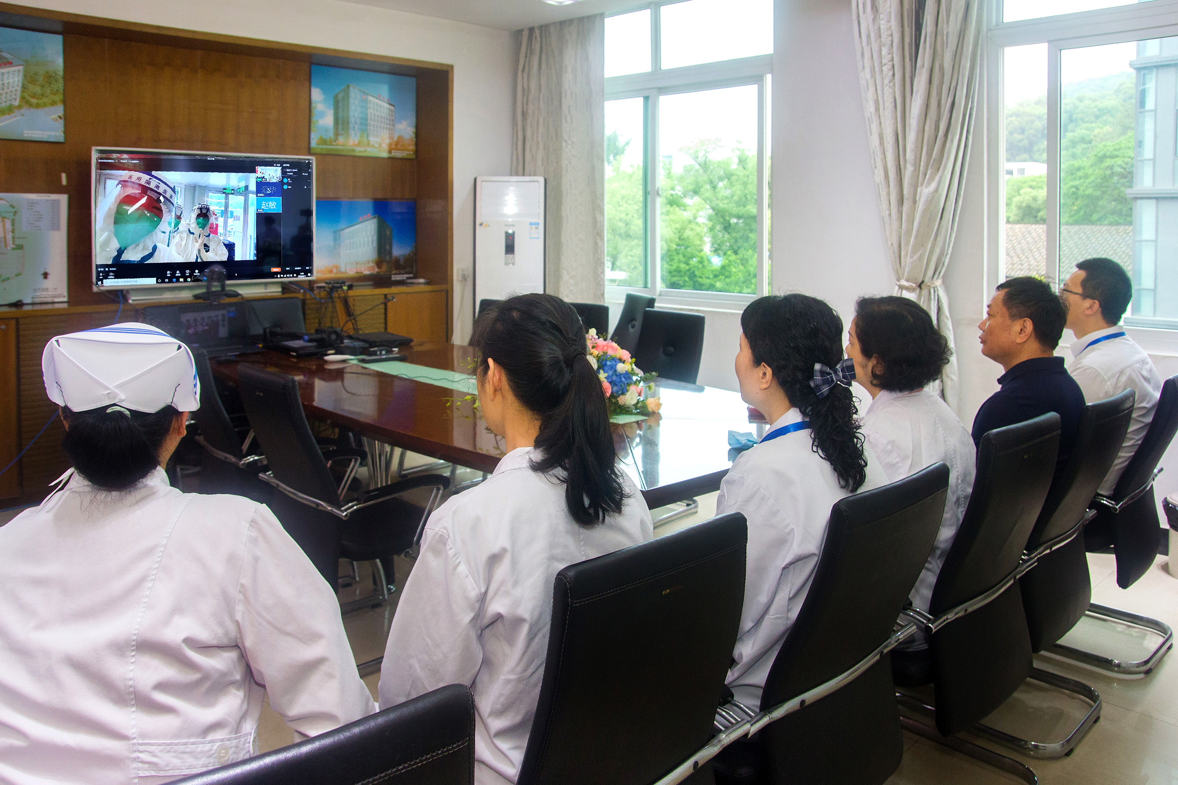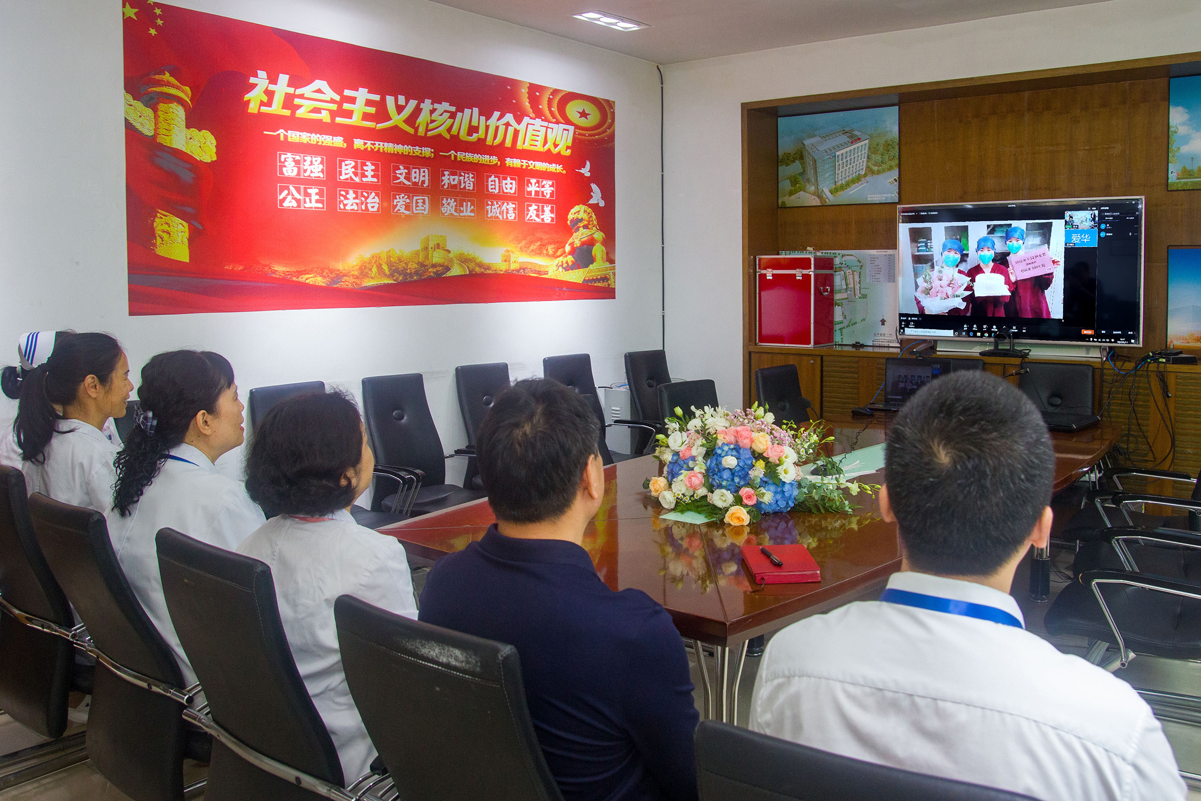 值此第111個5.12國際護(hù)士節(jié)來臨之際, 2022年5月11日上午,院黨委書記高虹、院長張郁瀾、副院長李丹、副書記劉芝茂、副院長胡錦韜在門診四樓會議室視頻連線慰問奮戰(zhàn)在北院區(qū)隔離病房、發(fā)熱門診的護(hù)士兄弟姐妹們,送上慰問金表達(dá)院領(lǐng)導(dǎo)班子節(jié)日的祝賀和親切的問候。