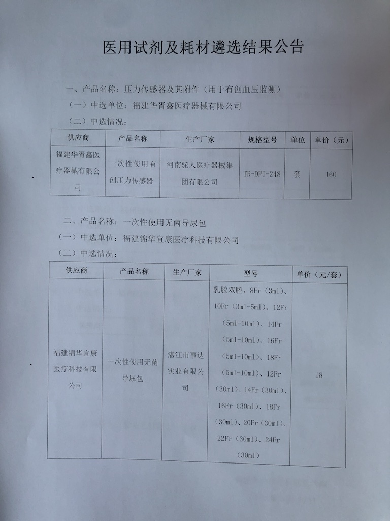 醫(yī)用試劑及耗材遴選結(jié)果公告