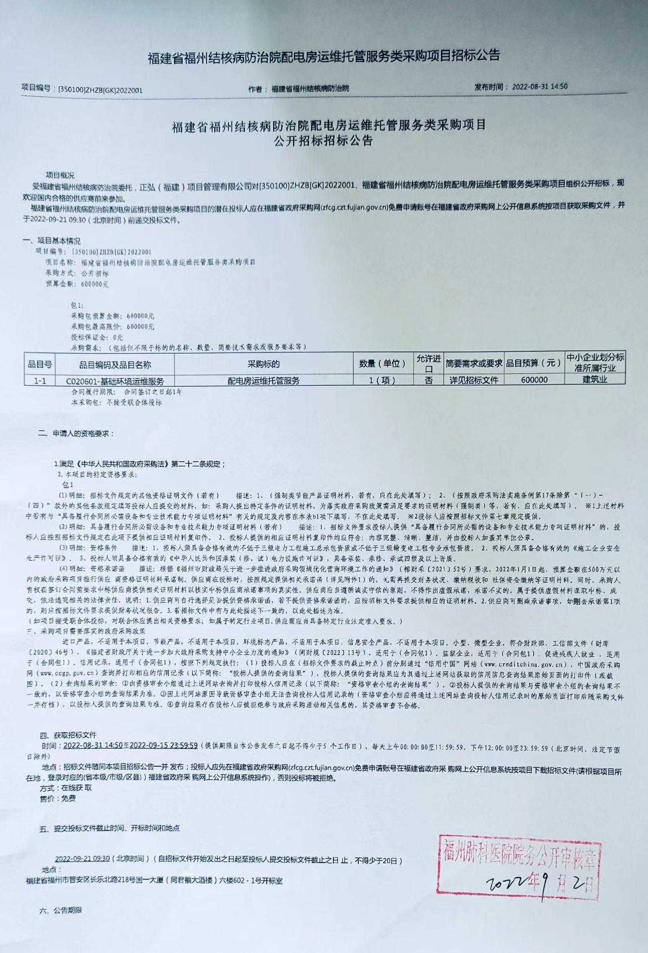 福建省福州結(jié)核病防治院配電房運(yùn)維托管服務(wù)類(lèi)采購(gòu)項(xiàng)目招標(biāo)公告
