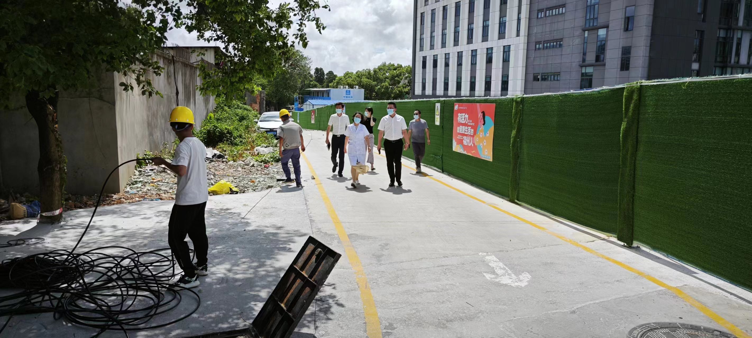 我院腫瘤綜合住院大樓及制劑樓項目當前正在施工建設(shè),檢查組一行實地查看施工現(xiàn)場和工人住宿區(qū),聽取前期施工項目部及防汛專家專題研究防臺風防汛預(yù)案及措施等準備情況,要求防汛防臺風期間,工地要采取關(guān)停措施,加強對相關(guān)設(shè)施的防風加固工作,對臨時工棚、低洼易澇地帶、臨時用電等危險區(qū)域和重點區(qū)域提前排查防范,確保人員和在建項目安全。
