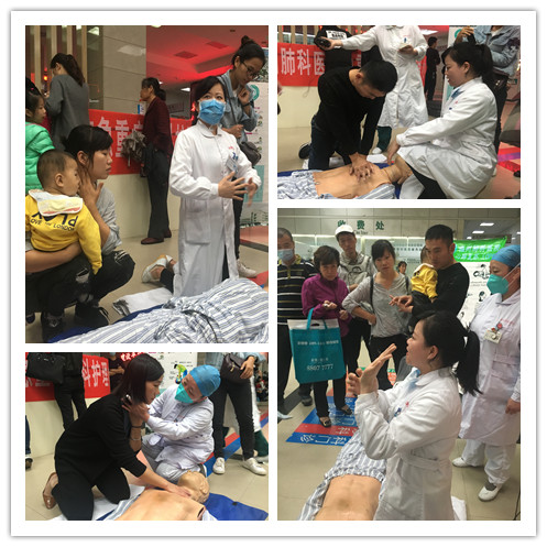 一輪講解和演示之后,慕名而來的廣大市民和現(xiàn)場的患者及家屬紛紛躍躍欲試,在黨員志愿者的指導(dǎo)下利用人體模具聯(lián)系心肺復(fù)蘇急救術(shù)。從判斷有無心肺復(fù)蘇指征到心臟按壓,從人工呼吸到按壓的速度頻率,黨員志愿者都耐心地教患者及家屬,并手把手地糾正操作過程中的不當(dāng)及不足。現(xiàn)場有一位抱著孩子來院就診的張先生,很認(rèn)真的利用手機記錄理論知識要點,并在人體模具上反復(fù)操作練習(xí)直至真正學(xué)會。他說:“心肺復(fù)蘇術(shù)的學(xué)習(xí)太有意義了很實用,今后不僅能幫助家人也能到有需要的人。今天在肺科醫(yī)院獲得專業(yè)的指導(dǎo),真是一次難得的經(jīng)歷!我已經(jīng)讓愛人拍下自己學(xué)習(xí)的視頻,回去教給工廠的同事們,讓他們都學(xué)會以造福更多的人!”